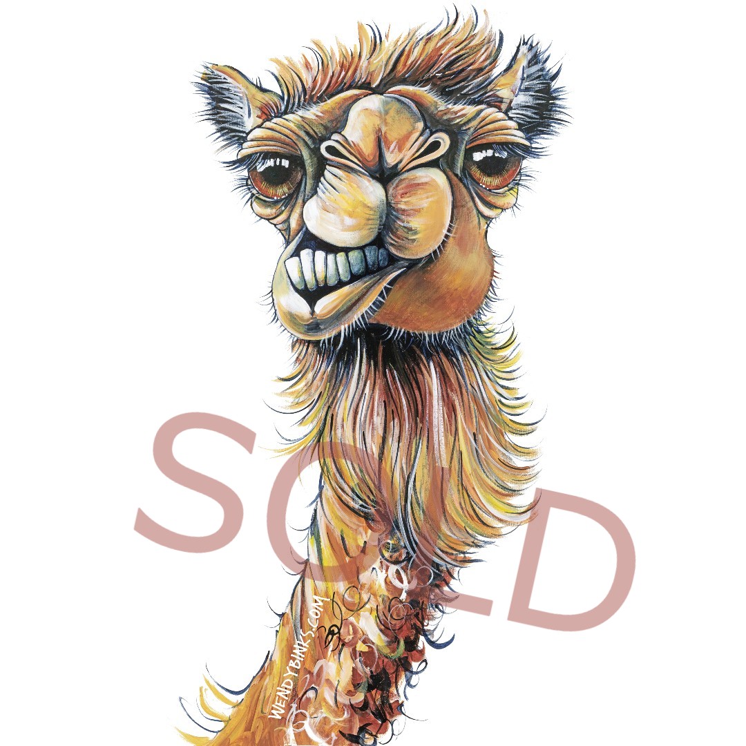 The inspiration for this painting came from one of the camels on my family’s tourist farm ‘Denmark Animal Farm’ in Denmark, Western Australia. Also from the camels I came across when doing the Canning Stock Route. Lots of laid back character.